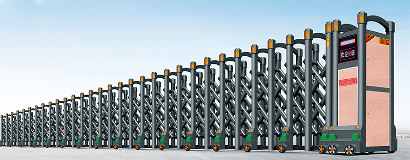 鋁合(he)金材質,門(men)排最佳高度(du)1600mm,伸縮門(men)長(chang)度(du)可以(yi)定制,LED顯(xian)示屏,電控采用(yong)最先進(jin)的CPU中央微處理為(wei)核心器件,驅動:36V無(wu)刷直流電機,斷電即停(ting),門(men)頭與角(jiao)輪(lun)帶有反光片,美觀實用(yong)。